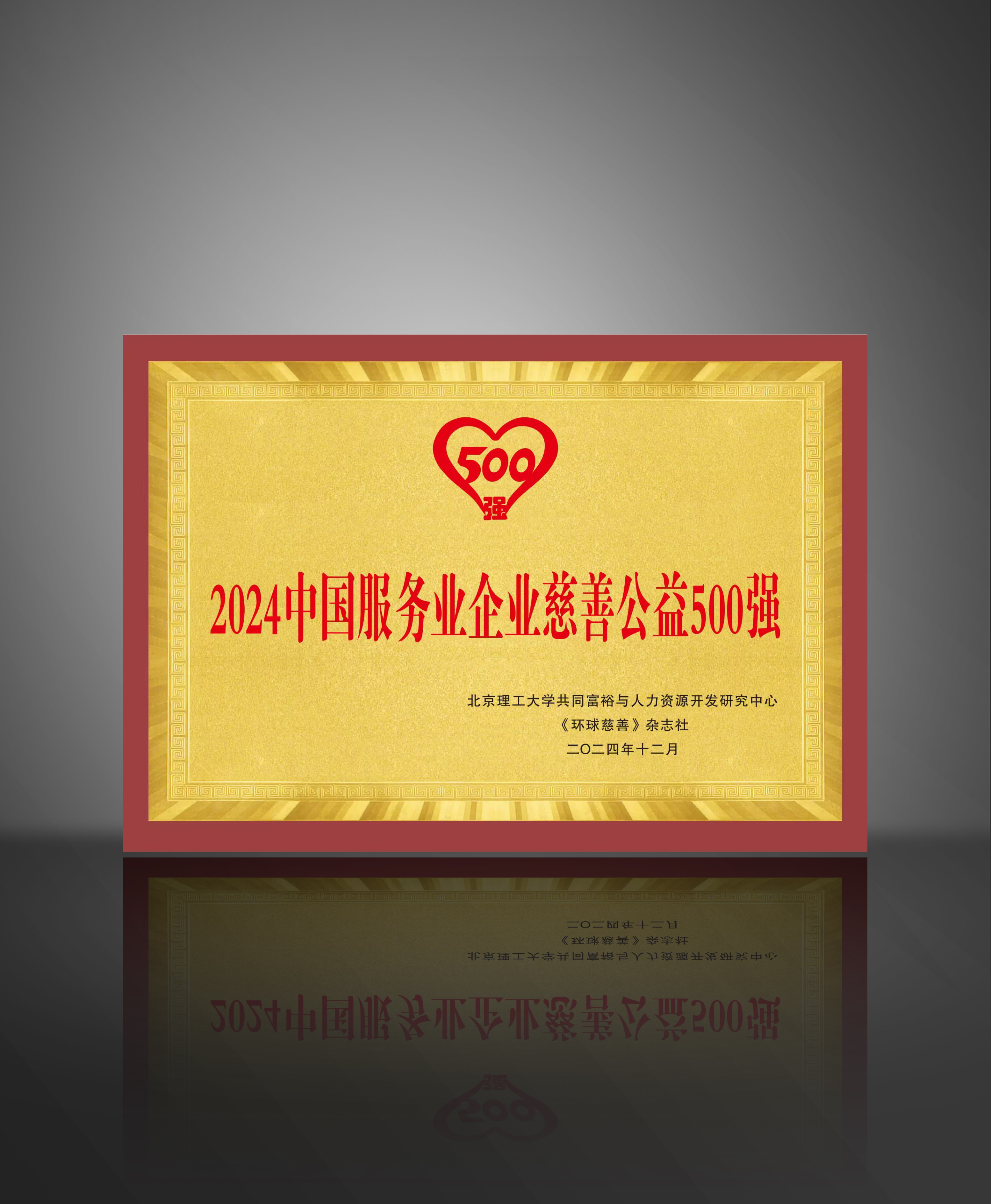2024年百洋荣获中国服务业企业慈善公益500强