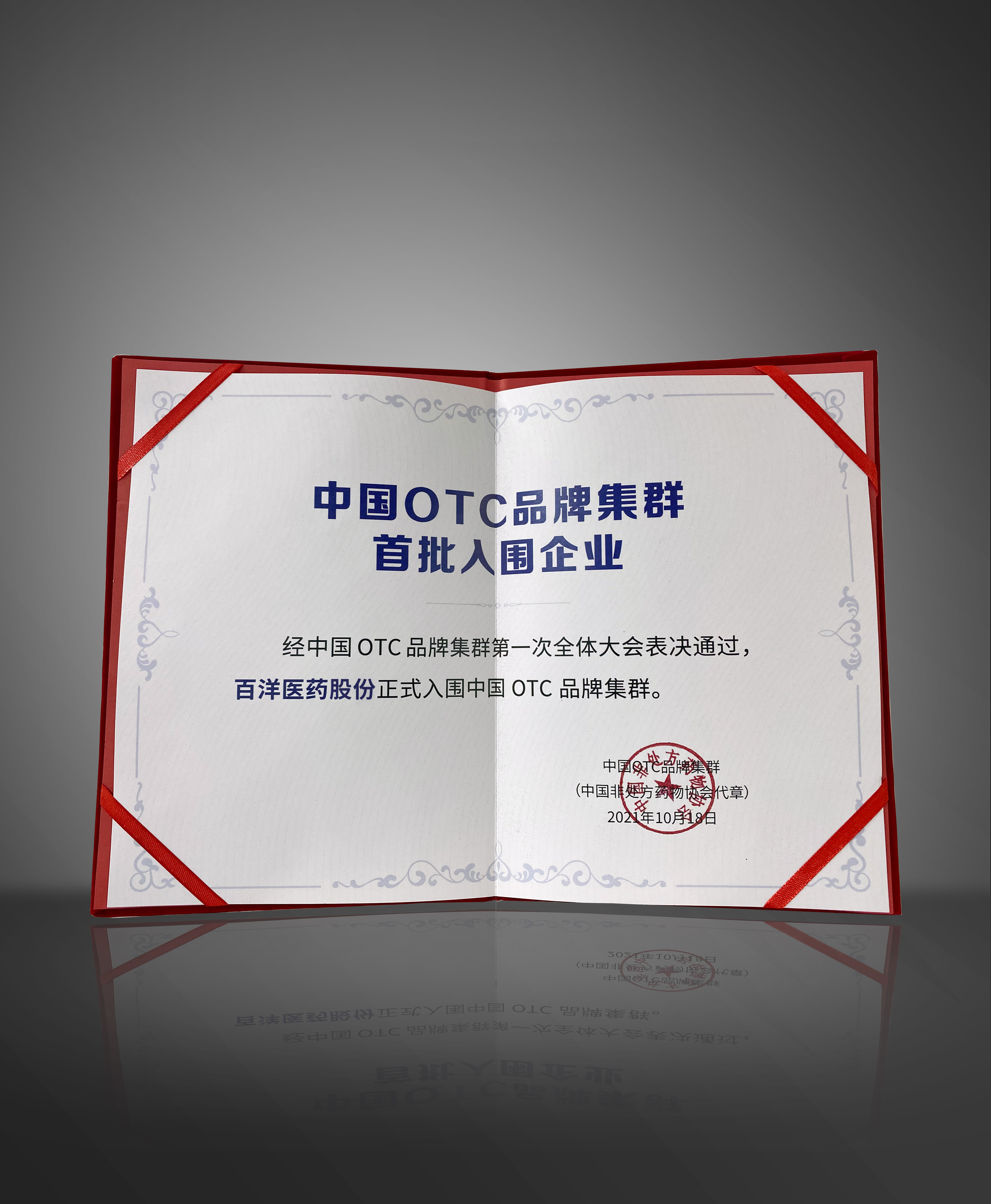 2021年百洋医药荣获中国OTC品牌集群首批入围企业