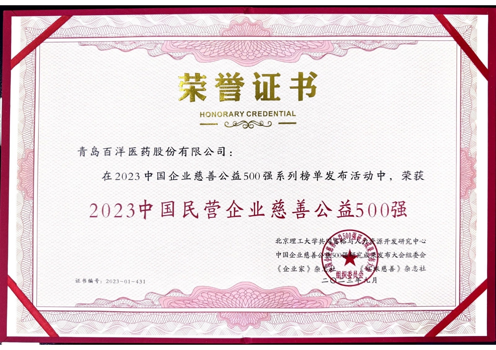 荣膺公益慈善榜单,不仅是对百洋医药公益贡献的肯定,更是对百洋回馈社会、秉承大爱精神的认可。未来,百洋医药将持续坚守公益慈善事业,全力以赴履行企业社会责任,以期为推动社会公益事业发展贡献更多的力量,为社会和谐发展持续注入积极能量!