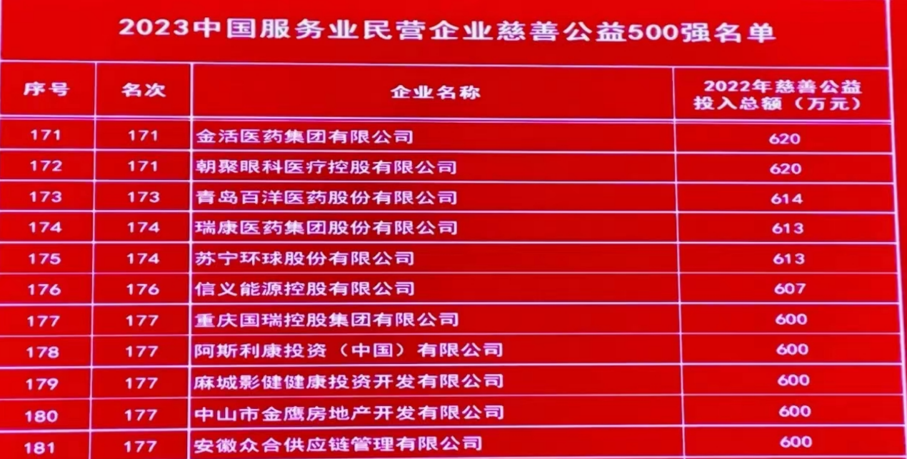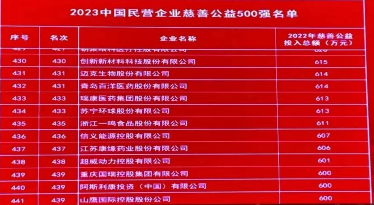 日前,第七届中国企业慈善公益论坛·2023中国企业慈善公益500强系列榜单发布大会在河南省鹤壁市举行。百洋医药凭借在公益慈善事业及企业社会责任方面的卓越实践和突出贡献,荣膺“ 2023 中国民营企业慈善公益 500 强”、“2023 中国服务业民营企业慈善公益 500 强”两项殊荣。